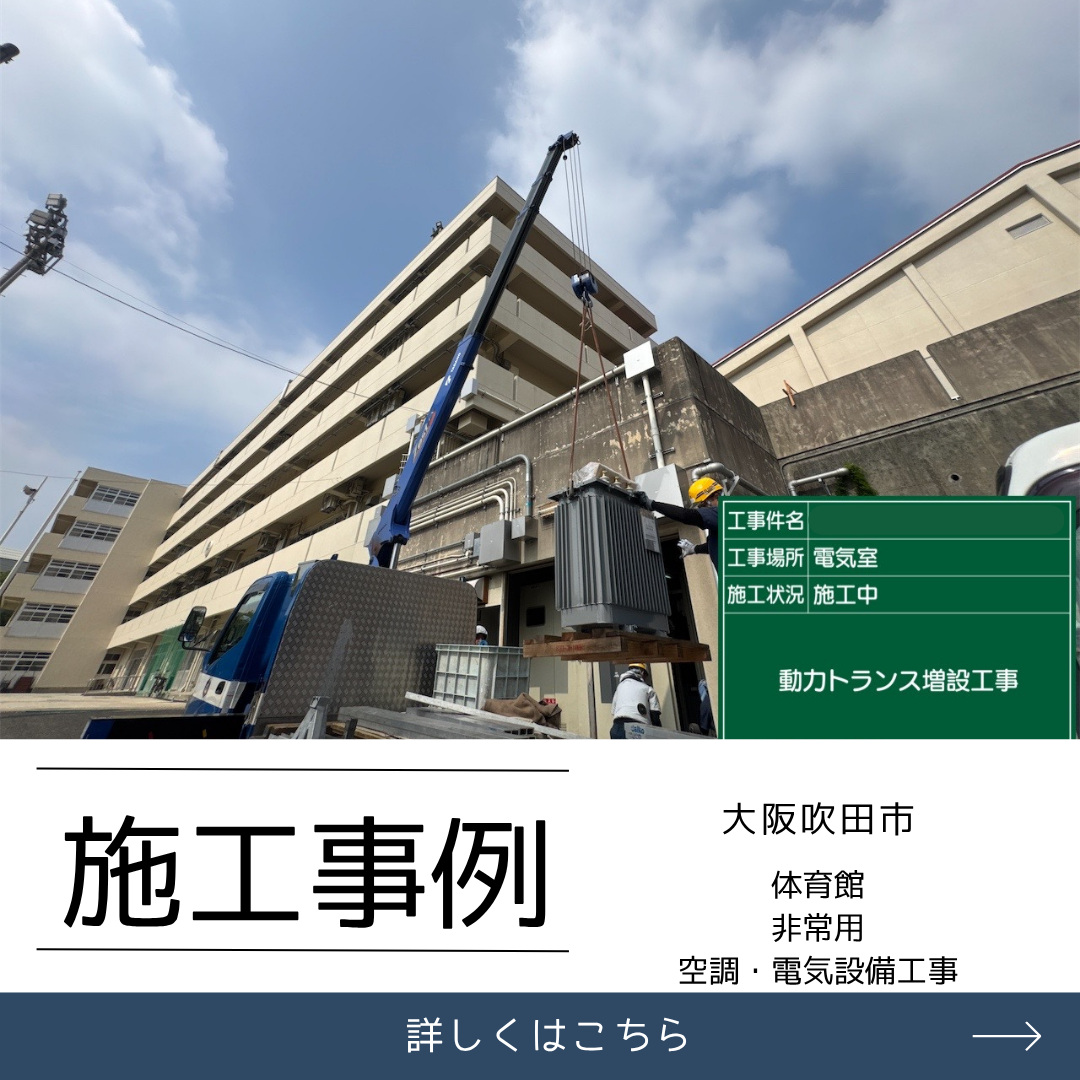 川野電気株式会社では、大阪府吹田市の体育館にて、非常用発電設備・動力トランスの増設工事を行いました。