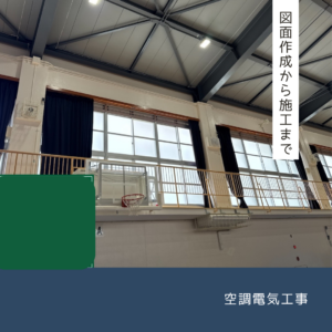 快適な空間を維持するため、体育館内の空調電源工事や電気設備の強化を実施。大人数利用でも安定した環境を保てるよう設計しています。